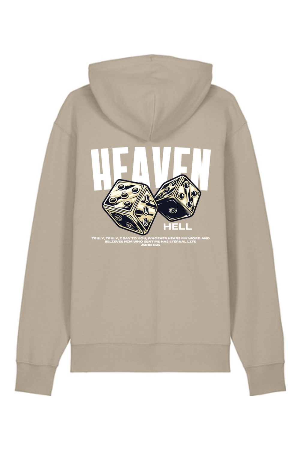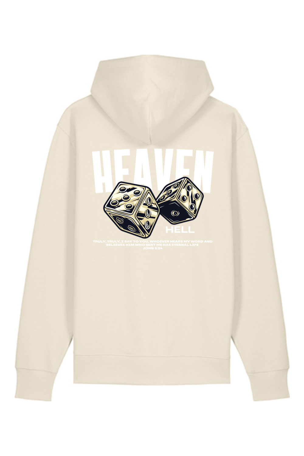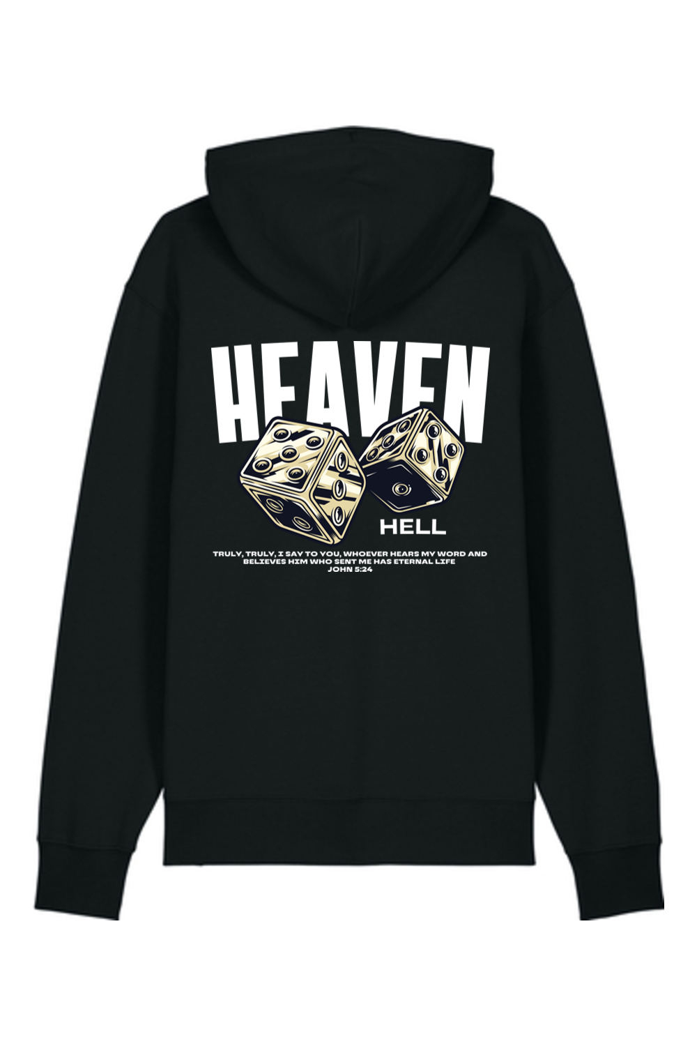 This statement piece brings faith and bold design together with the ultimate question: “Heaven or Hell?” Inspired by the words of Jesus in John 5:24“Truly, truly, I say to you, whoever hears my word and believes him who sent me has eternal life” — this hoodie is more than apparel, it’s a conversation starter.