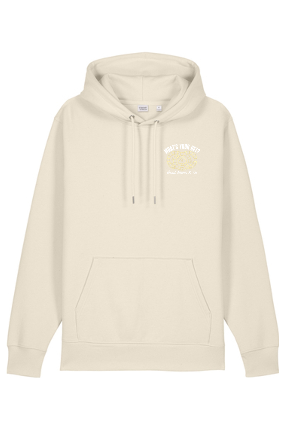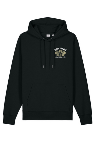 Refer to size chart below to determine your best fit. This hoodie is made from 80% organic cotton/20% recycled polyester, it is a heavyweight hoodie with a medium fit, draw cords are in matching color with kangaroo front pocket.