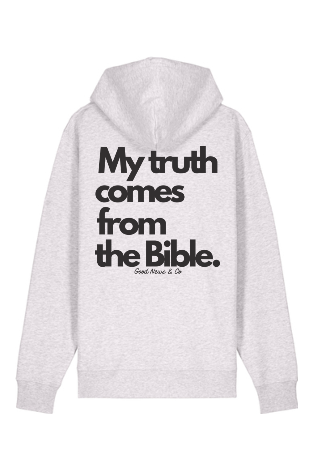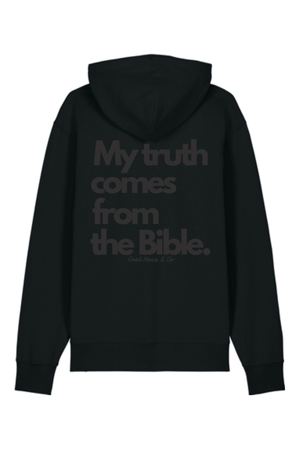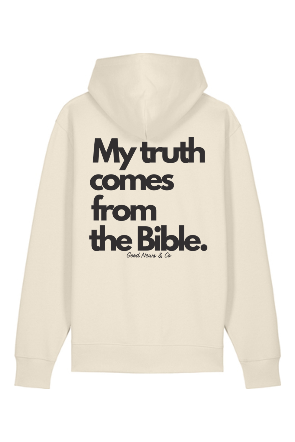 Bold faith, simple truth. This hoodie makes a statement that reminds everyone where real truth is found. Designed for everyday wear whether you’re at church, out with friends, or sharing your faith in the community. Its clean, timeless design pairs effortlessly with jeans, joggers, or a jacket, making it a go-to piece that sparks conversation and spreads the Good News.