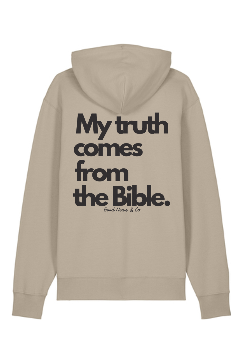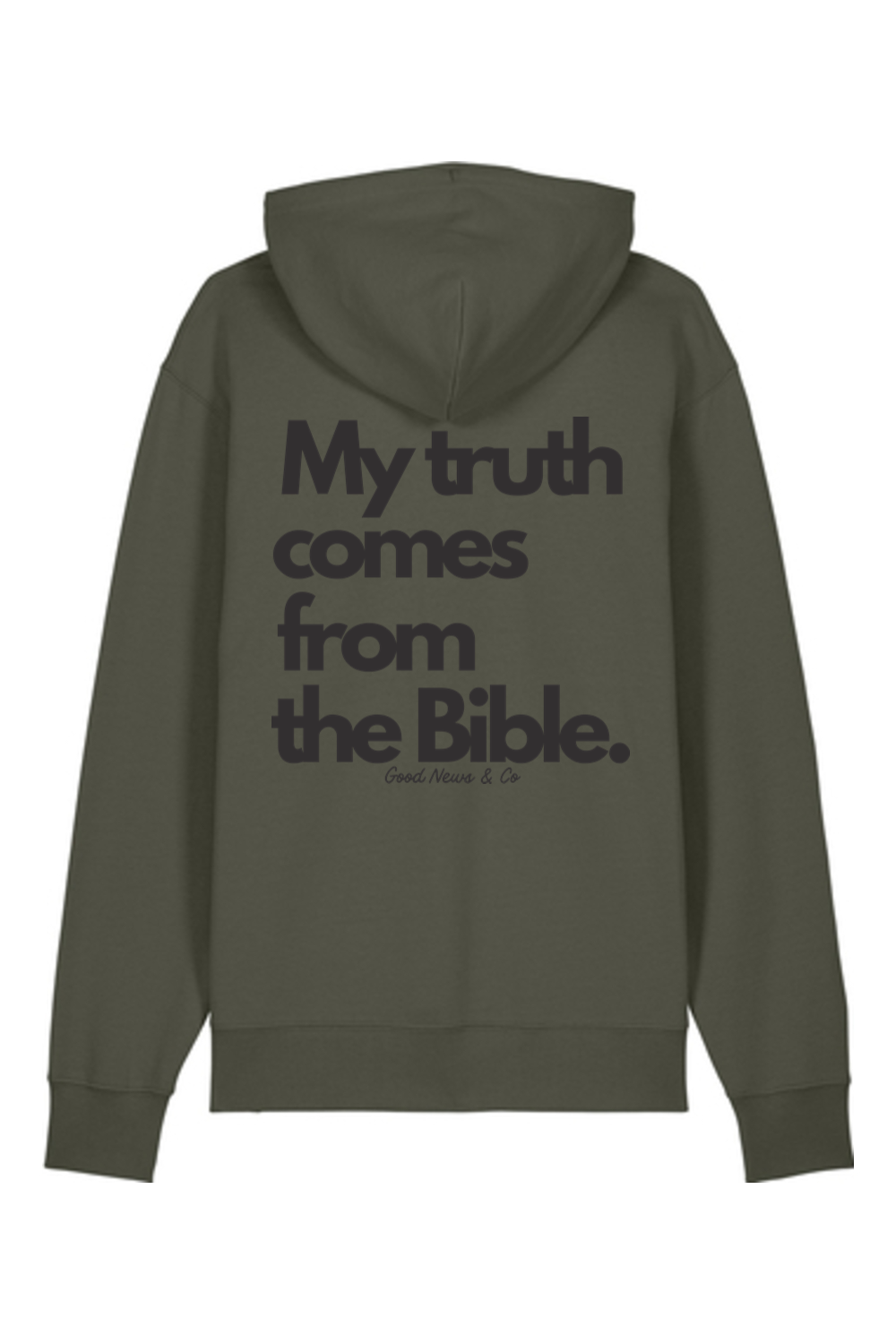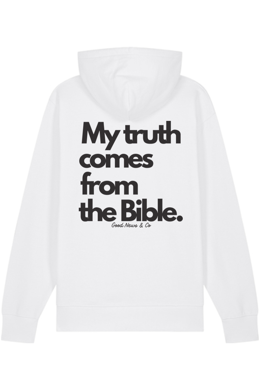 Bold faith, simple truth. This hoodie makes a statement that reminds everyone where real truth is found. Designed for everyday wear whether you’re at church, out with friends, or sharing your faith in the community. Its clean, timeless design pairs effortlessly with jeans, joggers, or a jacket, making it a go-to piece that sparks conversation and spreads the Good News.