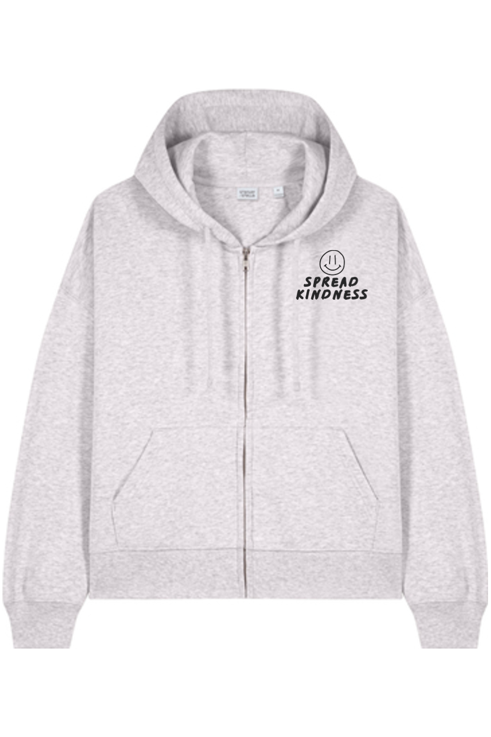 Refer to size chart below to determine your best fit. This women's zip up hoodie is made with 80% organic cotton/20% polyester designed for a medium fit with dropped shoulder, full zip with covered zipper.