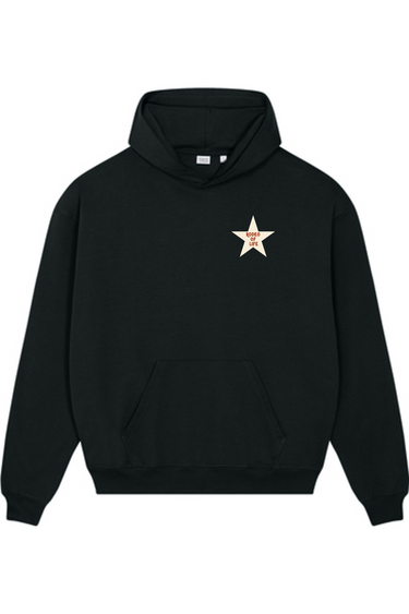 Refer to size chart below to determine your best fit. This hoodie is made from 100% organic cotton, it is a heavyweight hoodie with an oversized fit.